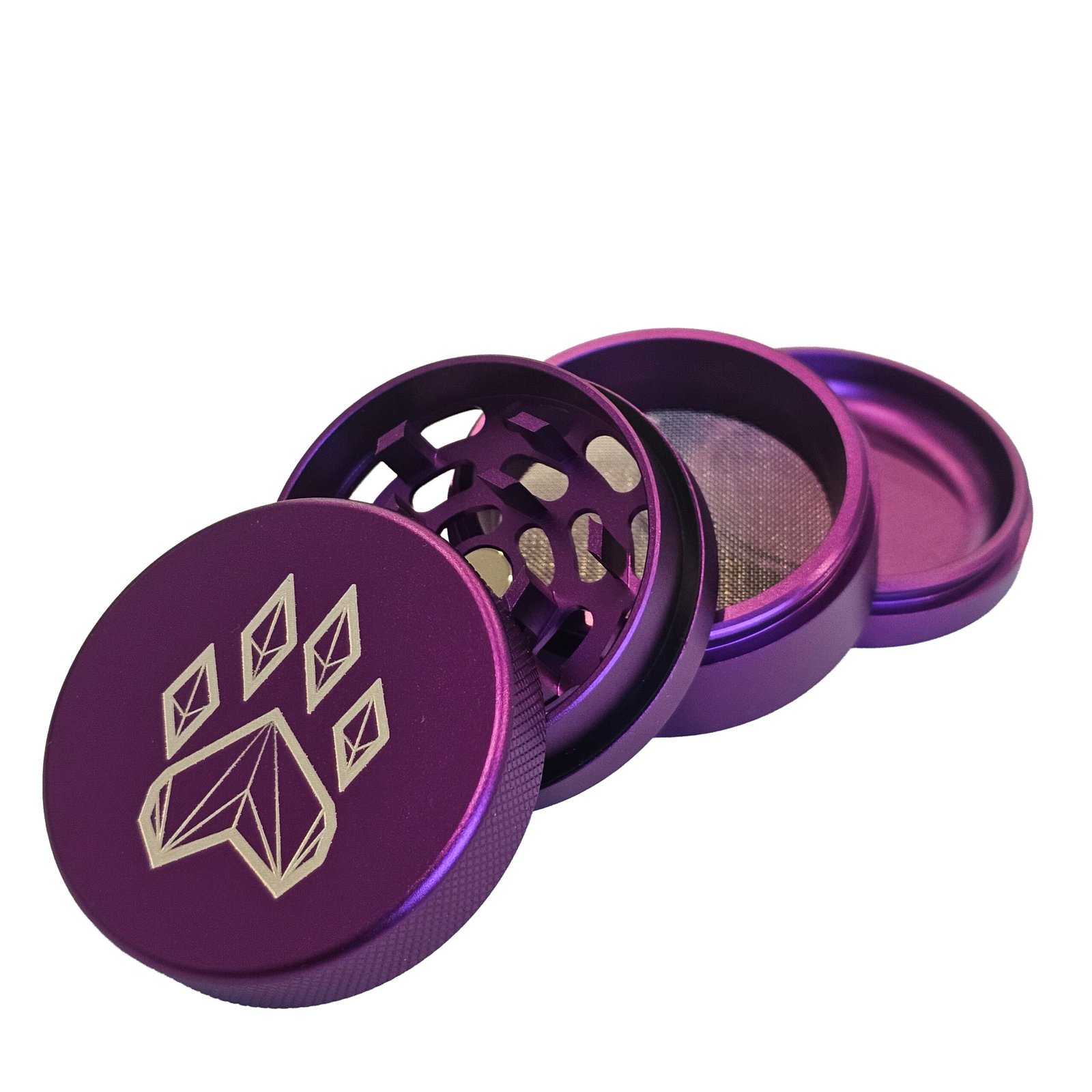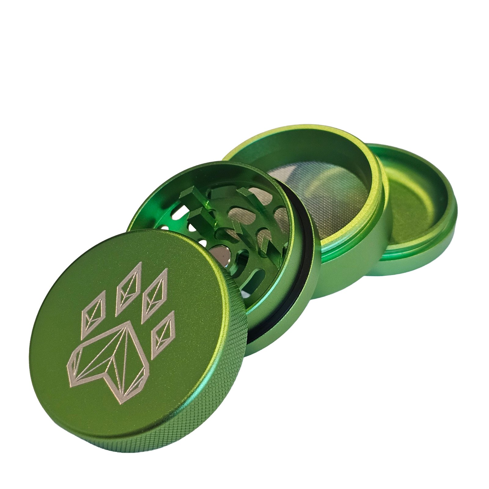 This compact 4-piece grinder is the perfect size to take with you on your next adventure. Like all of our grinders, the Standard 2” Grinder is precision machined from aircraft grade aluminum and is anodized and bead blasted for a vibrant finish. The kief sift is a stainless steel mesh and the kief catch is rounded like a bowl, making collection easy. Neodymium magnets keep the top two grinding plates held together tightly when grinding. A silicone disc is fitted to the bottom grinding plate to reduce friction and noise when grinding.